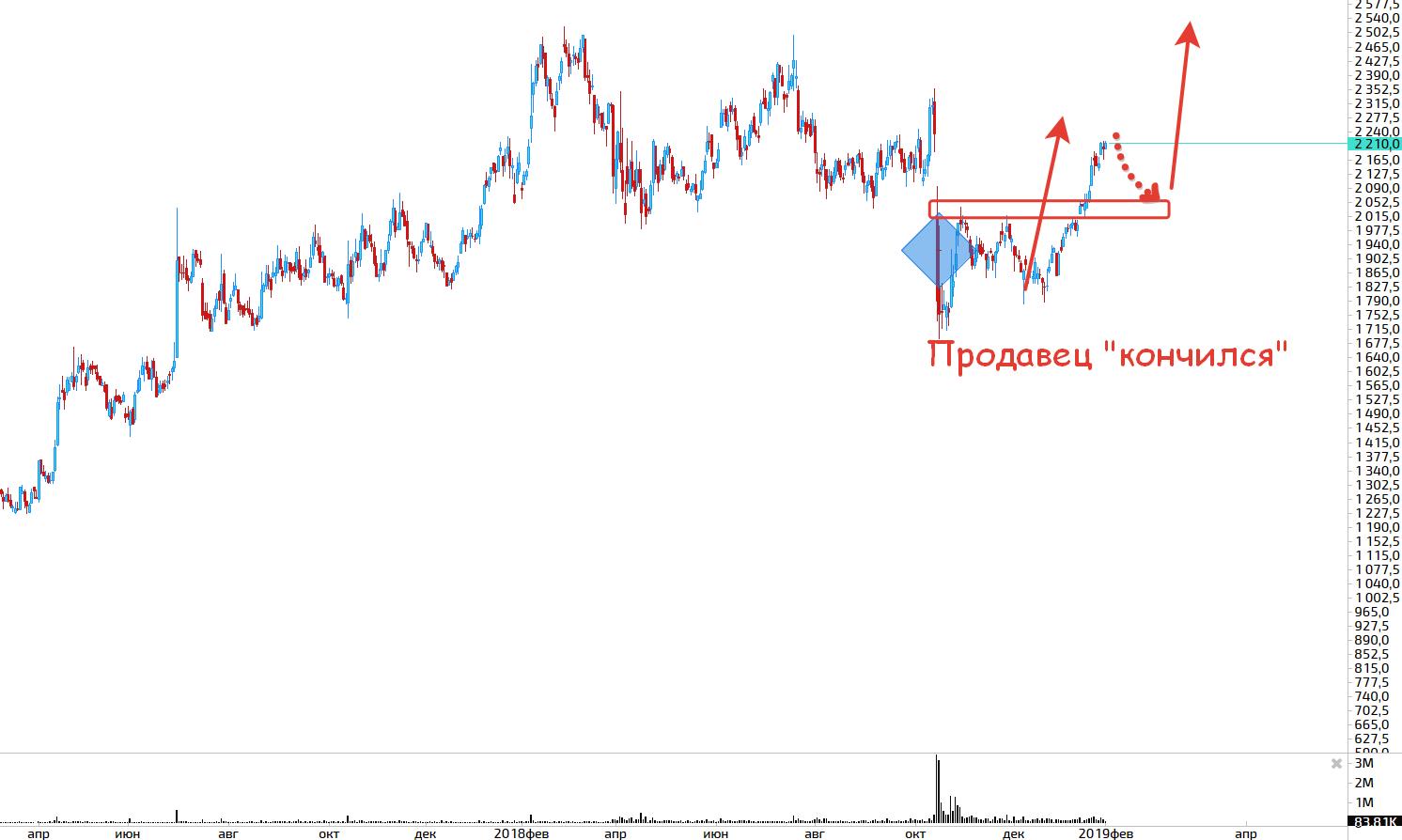 Яндекс. Мне видится явное изменение ситуации в акциях Яндекс, продавец не совершил толком никаких попыток сдержать цену в диапазоне 1800-2000 и мы совершили отличную волну роста в 25%, что говорит о новой волне спроса на акции, после отката если смысл ловить продолжение движения.