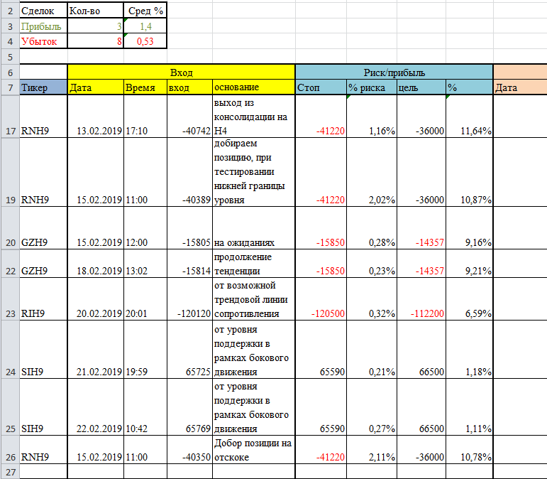 Пока в дневнике записываю каждую открытую позицию, на 1 марта буду делать отчет за месяц и на март переносить в дневник усредненные значения (если позы сохраняться).