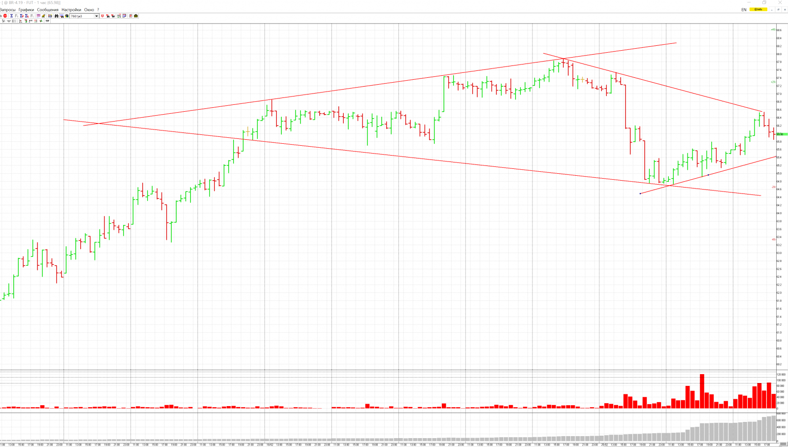 Для тех кто открыл шорт в нефти будет хорошой подсказкой где брать профит. На нефти на часовике нарисовалась фигура бриллиант. Следовательно открытые ранее шорты закрываем на уровне 65,47 по BR-4/19