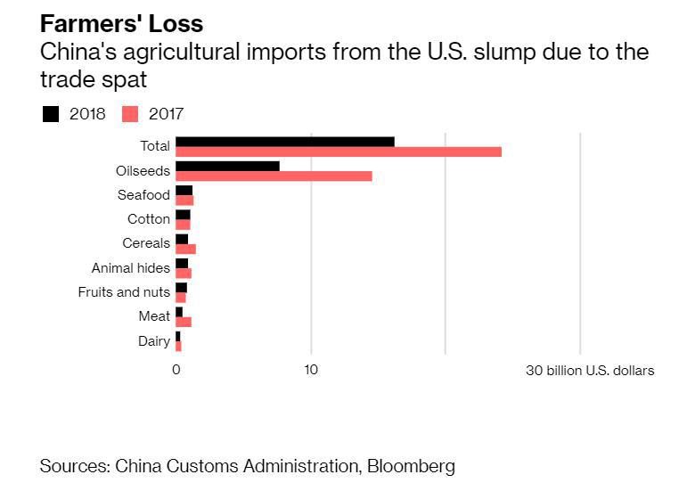 При этом 2 марта президент США Дональд Трамп попросил Китай немедленно отменить пошлины на американские сельскохозяйственные продукты. Одновременно он отменил введение 25% пошлин на многие китайские товары. За последние 2 года импорт сельхоз продукции из США в Китай значительно снизился из-за ответных мер КНР на введение американских пошлин: