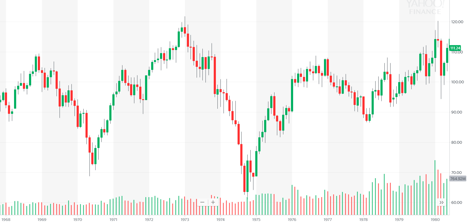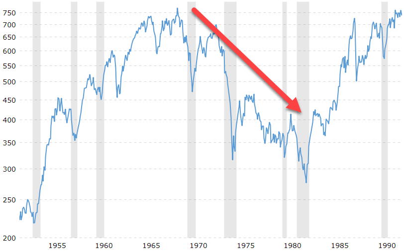 На затравку скину чарт СиПи в период роста ставок (с 1958 по 1982 годы, с учетом инфляции!):