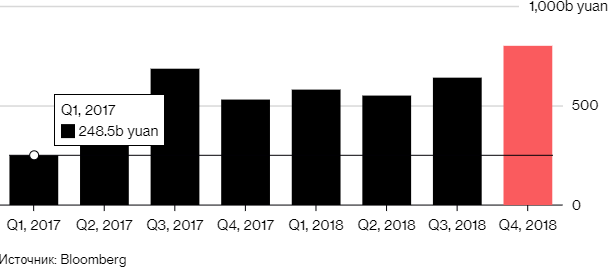 В итоге выпуск местных облигаций на которых и без того наблюдался пузырь достиг нового рекордного уровня в 4 квартале 2018 года.