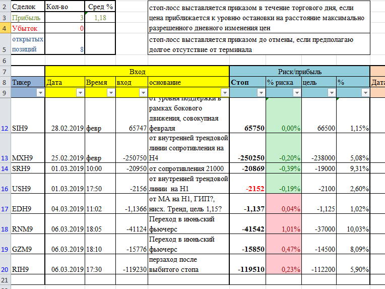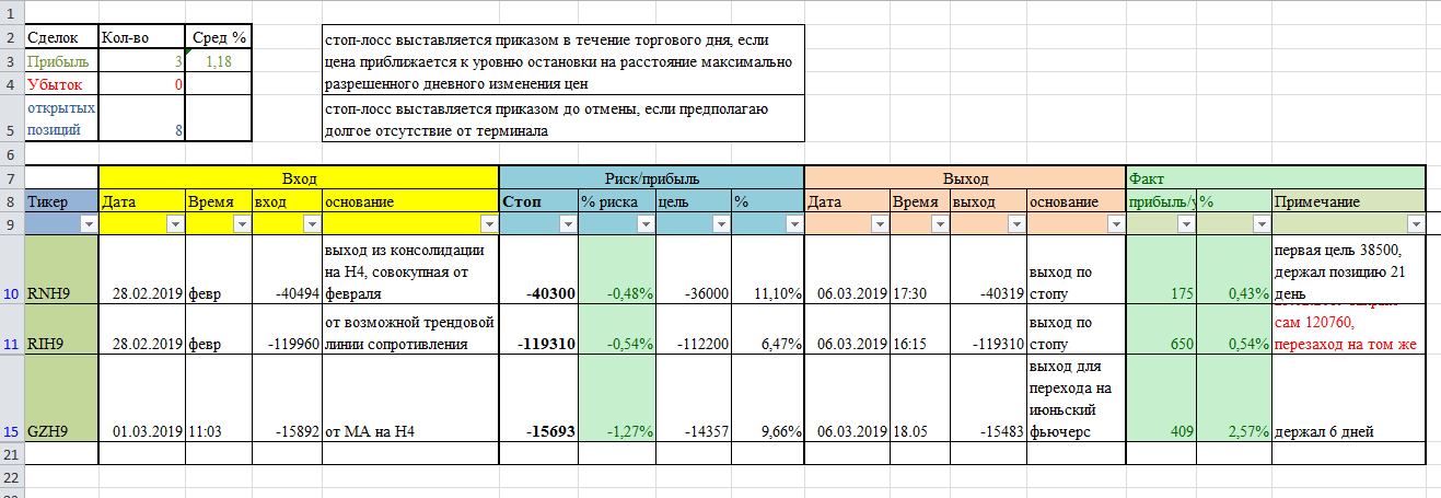 Сегодня пробовал открыть короткую по BrJ9, вход был 65,73, до выхода запасов, но когда уже внес позицию в дневник, увидел риск/прибыль - закрыл позицию 65,6 и не стал вносить .