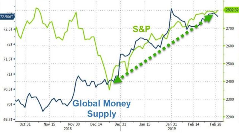 Глобальные акции с конца декабря 2018 идеально следуют за балансами центральных банков ...