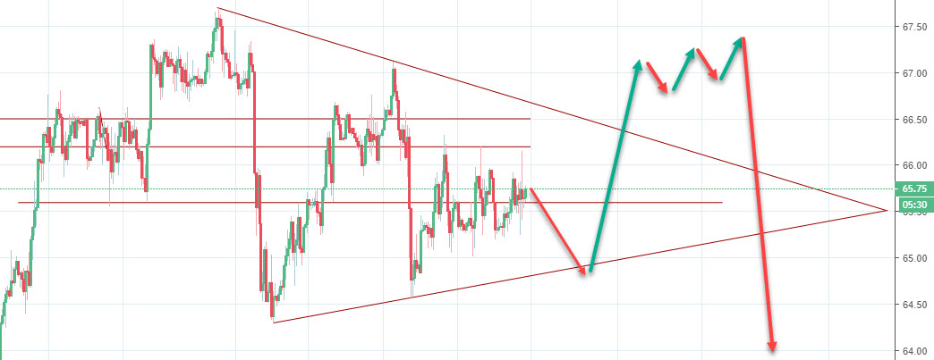 Прогноз сбылся. Загнали цену на 67 на секунду в день перед праздником. А сейчас «ушатали» ниже 64,5. Жаль очень резко цена скачет. Стоит отойти на чуток, и всё готово. Интересно, планы Кречетова о покупке на пробое 64,5 остаются в силе?