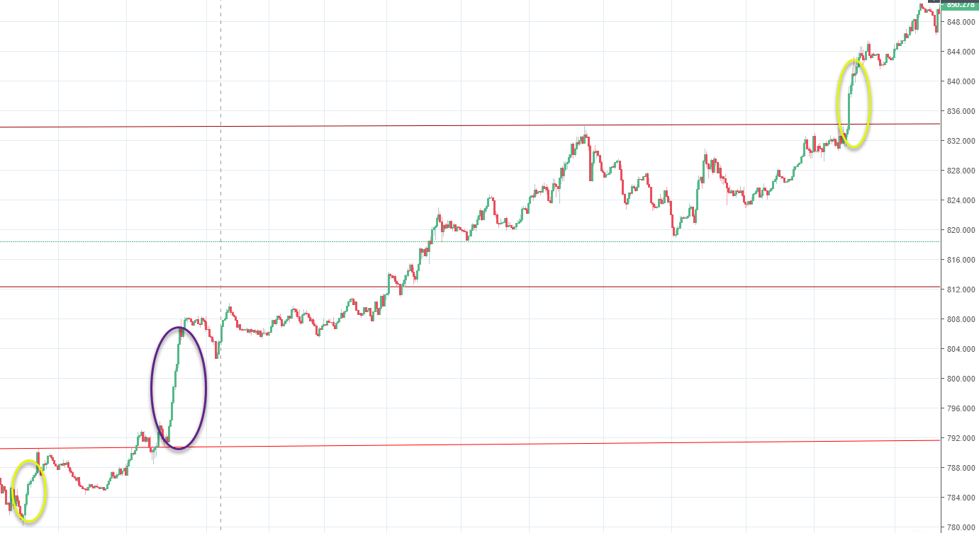 В идеале поймав сильное движение (выделено фиолетовым овалом). Как показывает динамика этого актива, такие движения приводят к дальнейшему росту еще на 5-10%.
