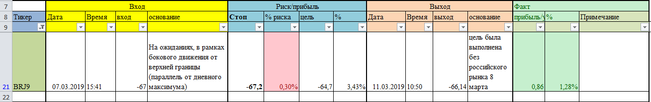 Как и писал в предыдущем посте с утра закрыл шорт по нефти, буду пробовать снова открывать в диапазоне 66,8-67.