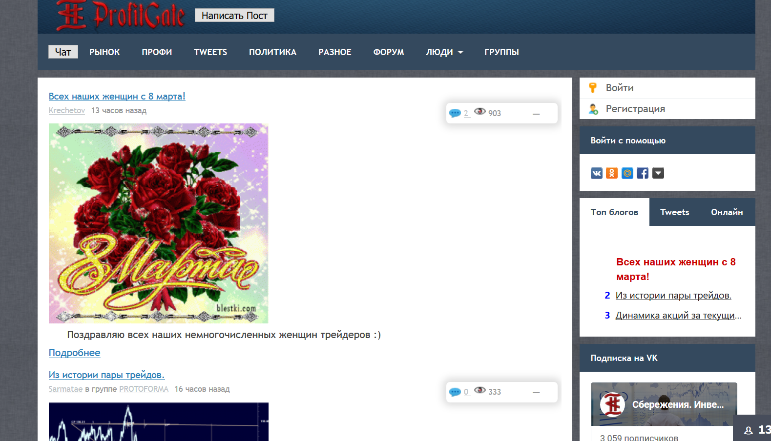 Нашему сайту сейчас немногим более года. Тогда несколько трейдеров которым надоело засилие околорынка и лудомании на других ресурсов решили вести свои блоги на profitgate.ru