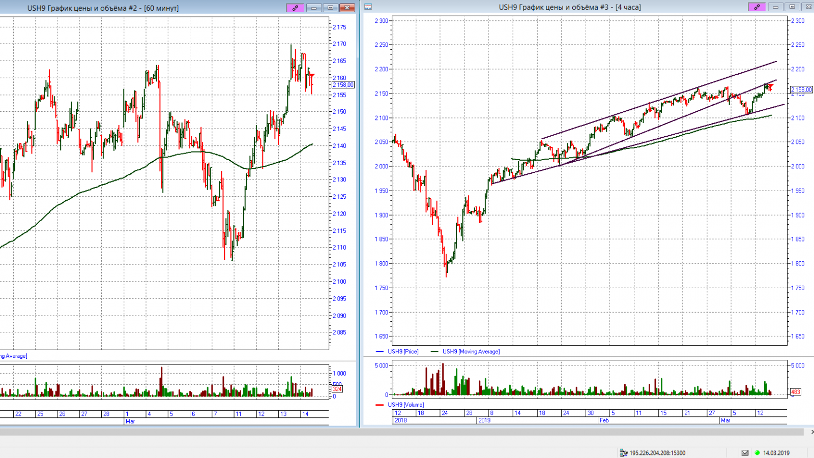 USH9 - держать равно как и ED держать долго не буду - если на вечерке или утром позиция будет минусить - режу убытки. По идее если цена не сможет удержаться на максимумах, с большей вероятностью ожидаю снижения индекса.