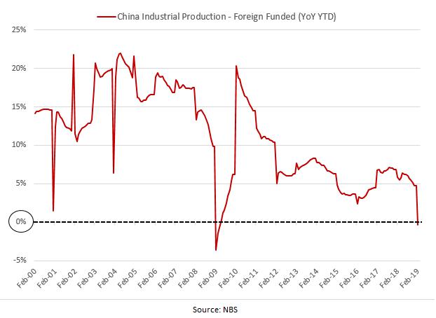 Эту картинку по производству иностранных компаний в Китае вчера скидывал в телеграм канале. Рост упал до отрицательных значений впервые с кризиса 2008-2009 годов. Жду когда это всё проявится: