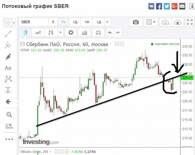 Технические моменты. Сбербанк. Ретест пробитого тренда.