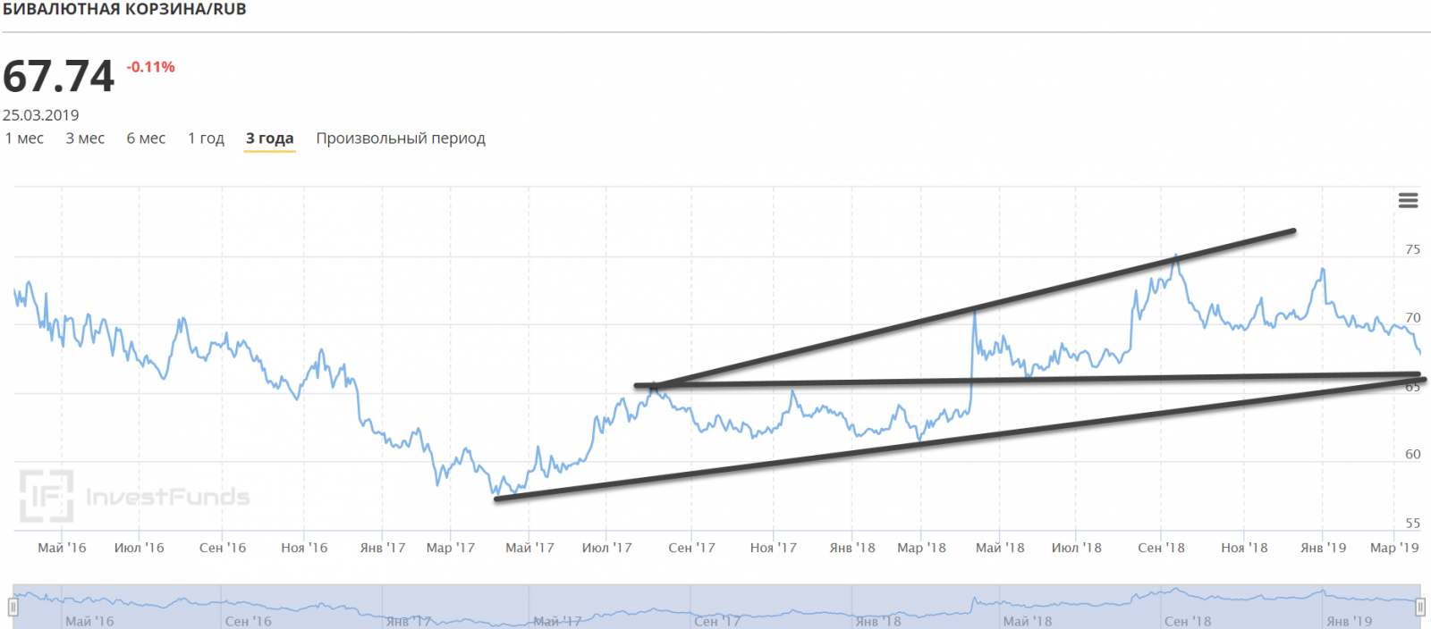 График бивалютной корзины пока показывает что с точки зрения техники покупать валюту к рублю может быть рановато: