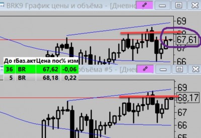 В нашем случае, учитывая что Брент с января и так была в слабо растущем канале, разумно ждать выхода из этого канала вверх и там следить схлопнется или не схлопнется спред к маю.