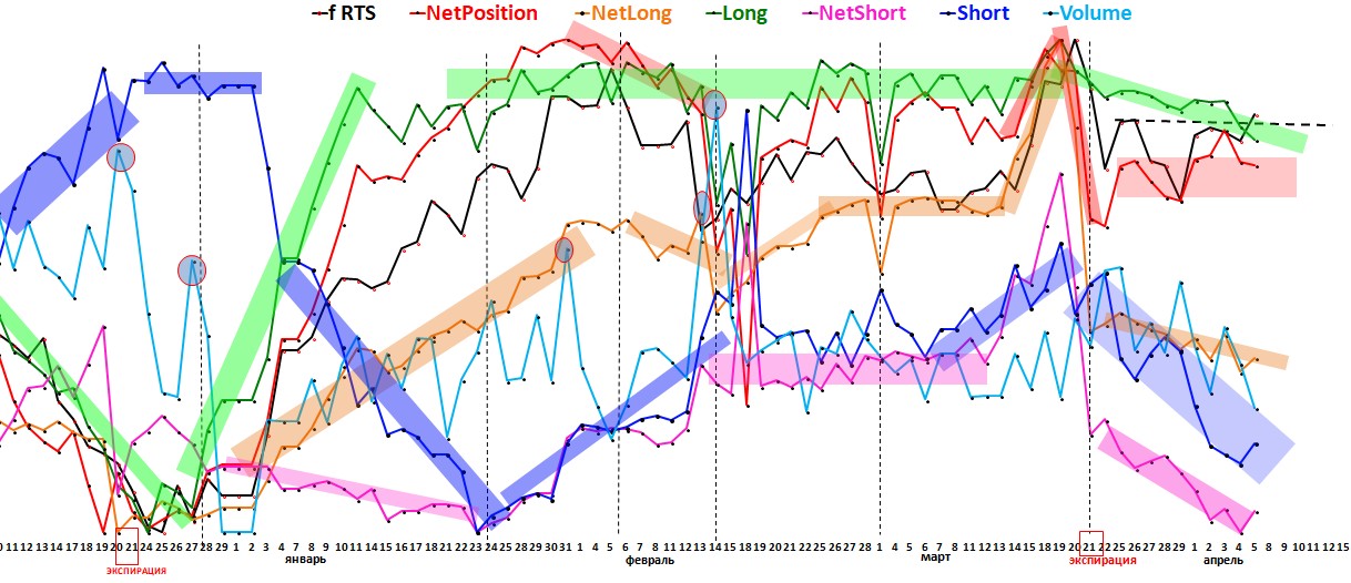 Индикатор Longрастет, индикатор Short падает. Надеемся осилить высоты начала февраля ))) и потащим за собой РТС?