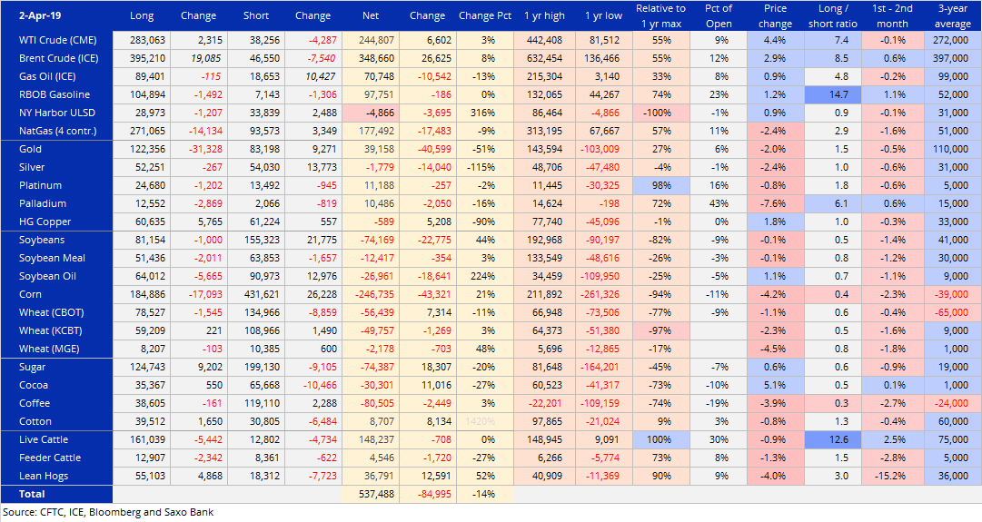 Нон-стоп покупки сырой нефти продолжаются шестую неделю. За неделю до начала апреля суммарный нетто-лонг в Brent вырос на 27 тыс. Контрактов, в WTI на 7 тыс. контрактов и Достиг 593 тыс. Лотов, что стало максимальным нетто лонгом участников рынка с 19 октября:
