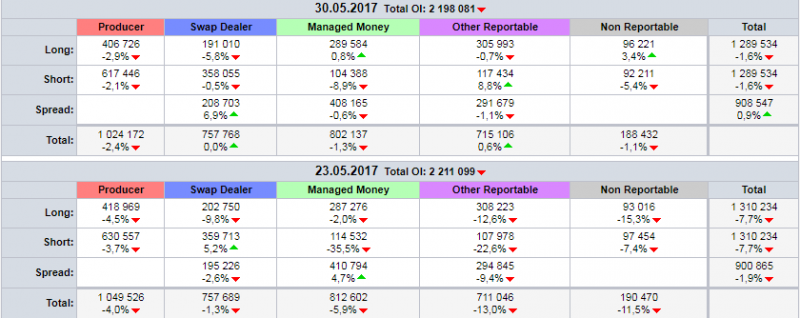 История сильных сбросов Открытого интереса WTI Crude Oil COT Summary (Futures) за 2017 г.
