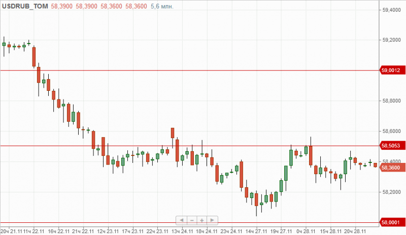 Рубль на прошедших торгах так и не смог определиться с направлением движения и в текущей ситуации локальным сопротивлением выступает 58,50, при проходе которого первые цели роста лежат на отметках 59 и 59,50. Поддержкой служит отметка 58 и если она не устоит, то национальная валюта получит шансы на укрепление к отметке 57.