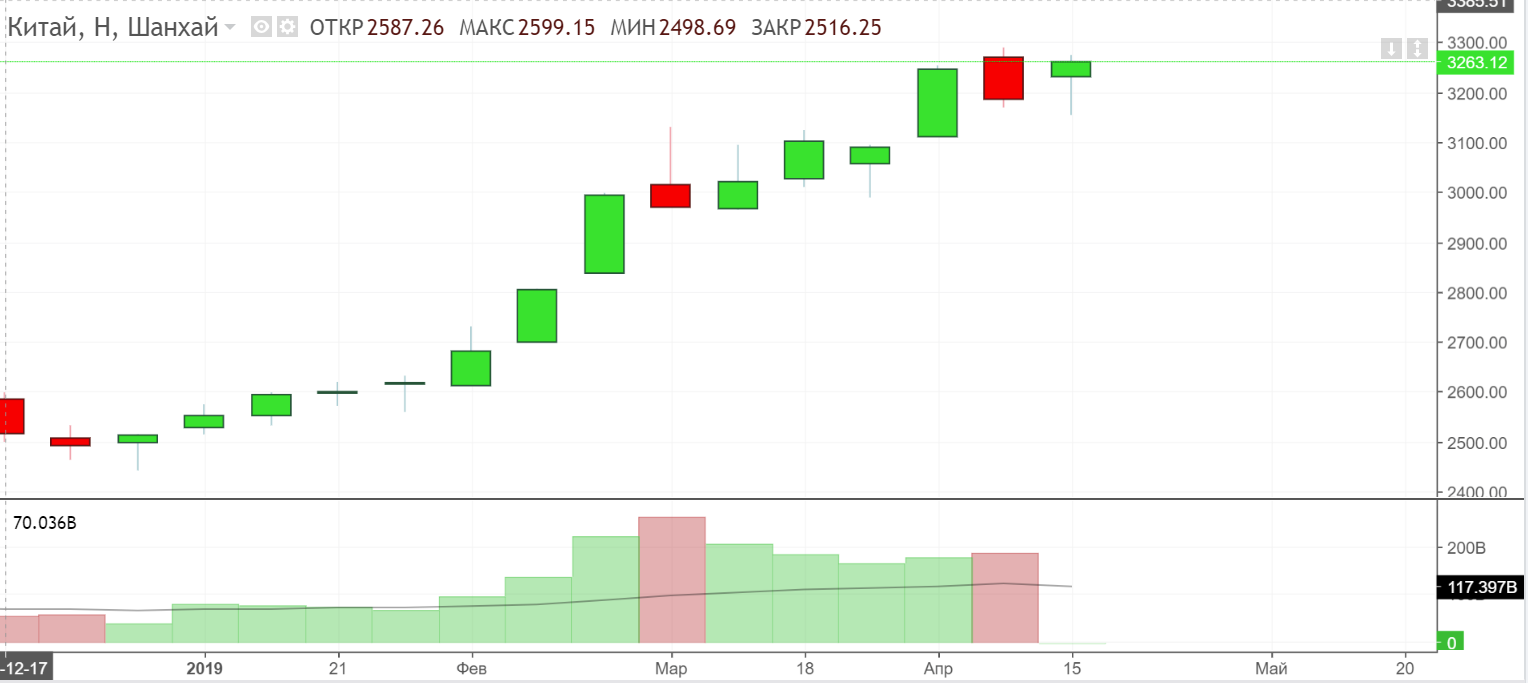 Дело в том, что китайский рынок растёт в ожидании сделки между США и Китаем уже четвёртый месяц с начала этого года и прибавил более 30% по своим основным индексам: