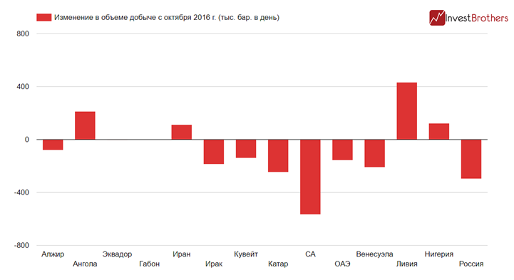 Ограничения ОПЕК и России привели к тому, что с октября 2016 г. с рынка ушли порядка 1 млн баррелей в сутки. Соединенные Штаты за это же время нарастили добычу на 1,2 млн баррелей, а к декабрю может быть и на все 1,4 млн, то есть перекроют этот объем почти в 1,5 раза.