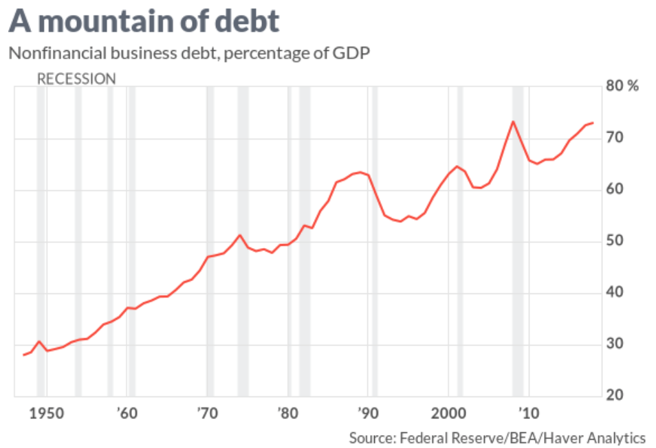Сегодня будет пара интересных графиков. График первый, это отношение nonFinancial bussiness debt к ВВП США.