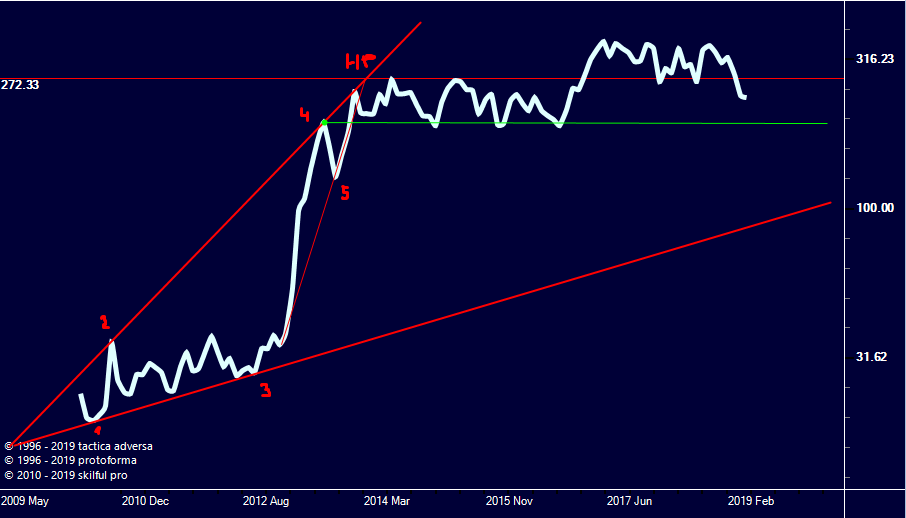 Месячный план (график построенный по ценам закрытия) Модель расширения от начала тренда: