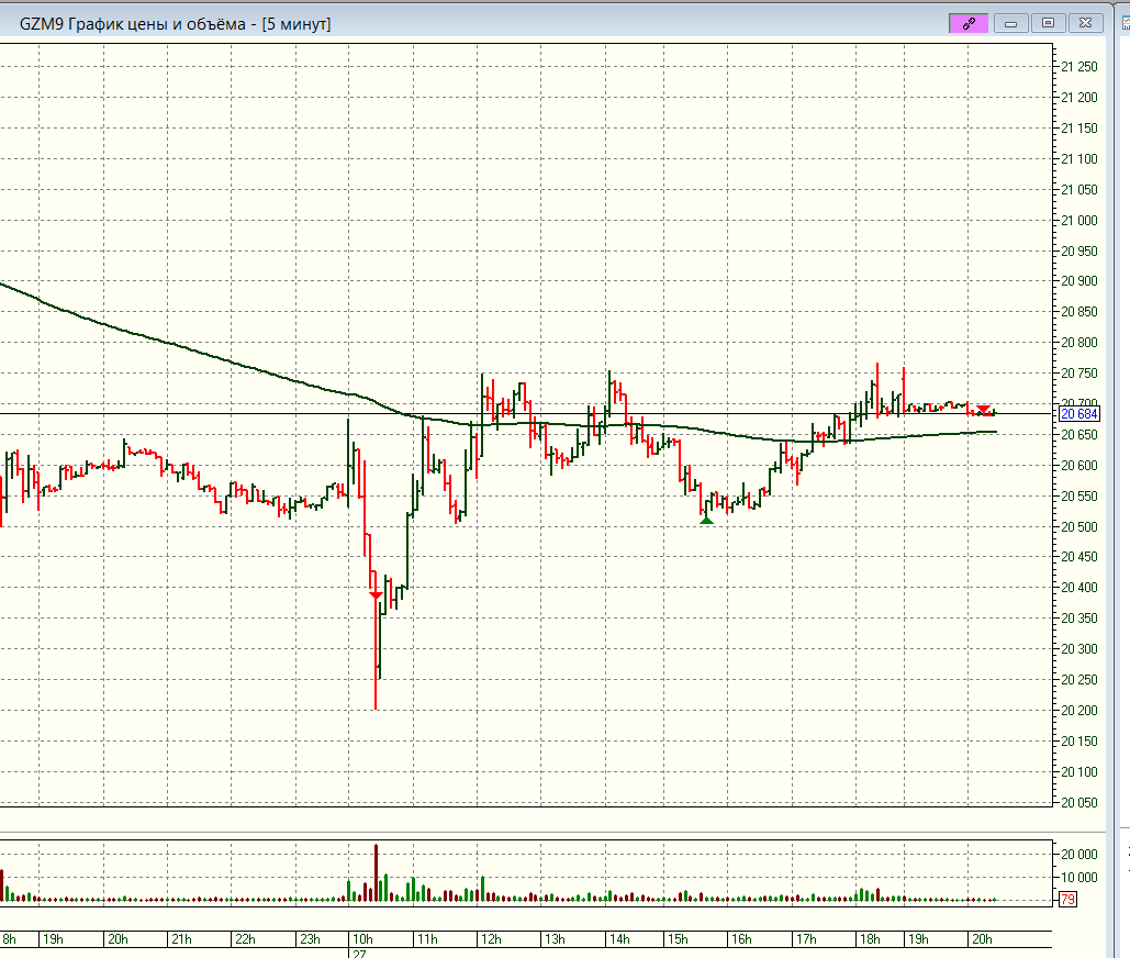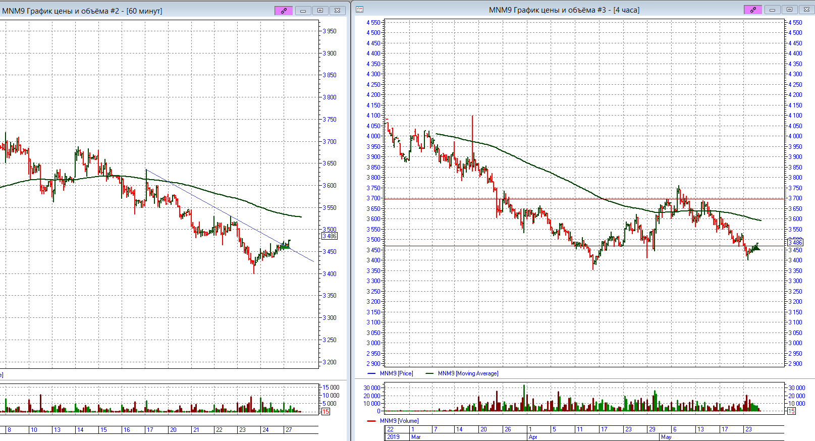 Так же к открытым позициям снова добавил лонг RNM9 и MNM9. По MNM9 впервые попробовал ТД-линии при N=20 на часах: