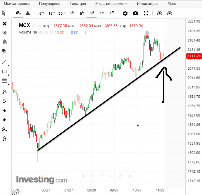 Индекс ММВБ. Отскок от тренда состоялся. Будет ли пробой ?