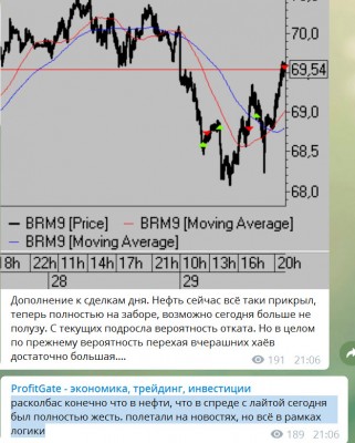 Так же торговал сегодня нефтью в ней тоже не попёрло, реализовывал идею которую писал в комментариях к утреннему посту: