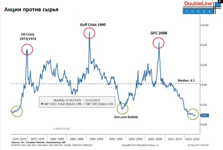 Доходность сырьевых активов в сравнении с отдачей от акций находится на минимуме с 1970 г.