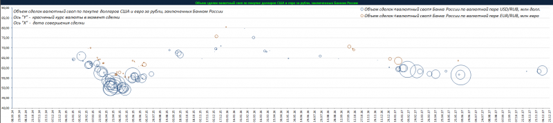 Объем сделок валютный своп по покупке долларов США и евро за рубли, заключенных Банком России