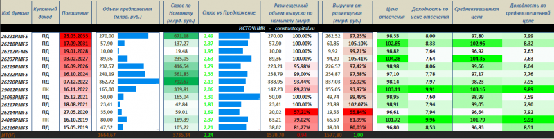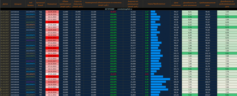 Совокупные данные по размещению ОФЗ 2017 г.
