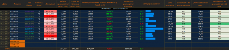 Полный список размещений ОФЗ за 2017 г., с учетом результатов последнего аукциона от 06.12.2017