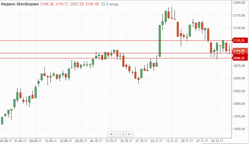 Индекс Мосбиржи на прошедшей торговой сессии закрылся на отметке 2104,99п., показав нулевую динамику. В текущей ситуации локальная поддержка по-прежнему расположена на отметке 2100п. и основная на 2090п., проход которой может открыть дорогу в район 2080п.-2065п. Для продолжения роста индикатору по-прежнему нужно преодолеть отметку 2125п.