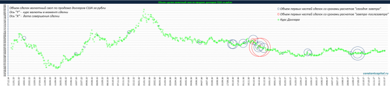 Объем сделок валютный своп по продаже долларов США за рубли, по данным статистики ЦБ 2015 — 2017 г.