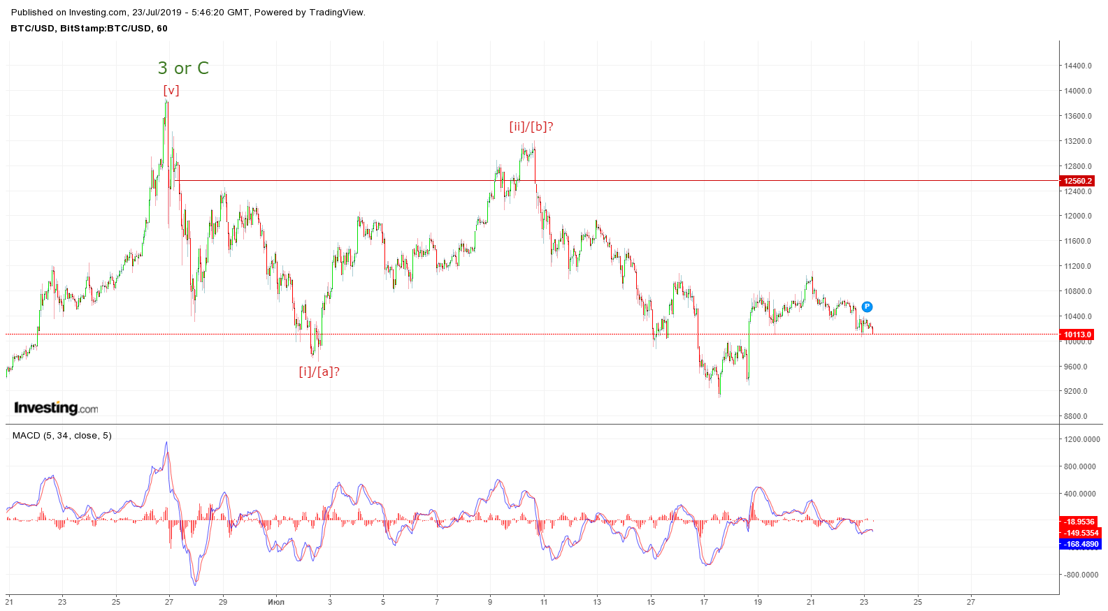 По биткоину, увидели ожидаемое снижение, но оно было не таким мощным, как ожидалось и, что более важно, не внесло ясности в дальнейший сценарий движения. В этом случае нужно или ждать прояснения ситуации или перейти на меньшие степени: