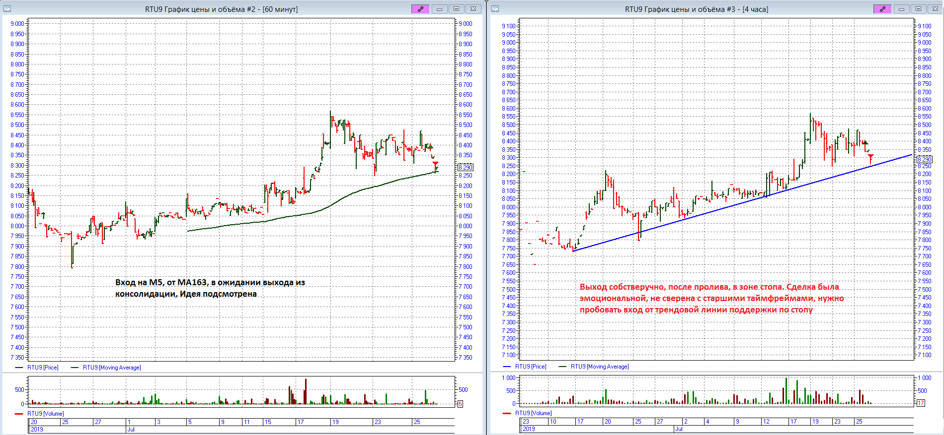 RTKM-9,19. Подсмотрел идею у Романа Андреева, вошел эмоционально, на малых фреймах, не сверившись с старшим. За что сразу же и был наказан за сие лудоманство. Правда сказать, что инструмент для меня новый и входил небольшим объемом для пробы, но в дневник занесу как полным объемом. А так - неликвид инструмент и сейчас снова пробую входить :