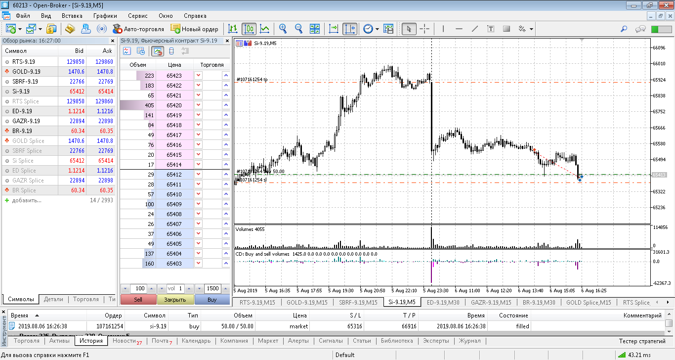 Закрытие и реверс были по рынку, по выходу объемов, т.к. выход объема заранее предугадать нельзя, то поставил алерт на объем и все.