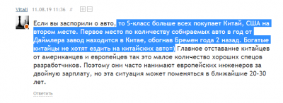 Вот и ответ. И при чем тут продажи в России Даймлером? Разговор шёл о США и Китае. Вы случайно с Ланой не родственники? У неё тоже писанина опережает мысль :D