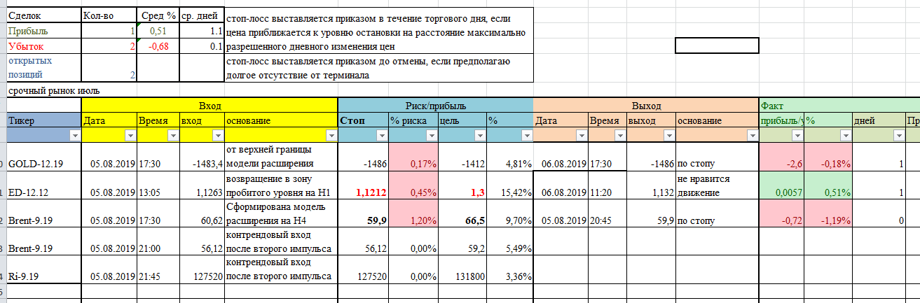 Открытые позиции по фондовому рынку на данный момент следующие: