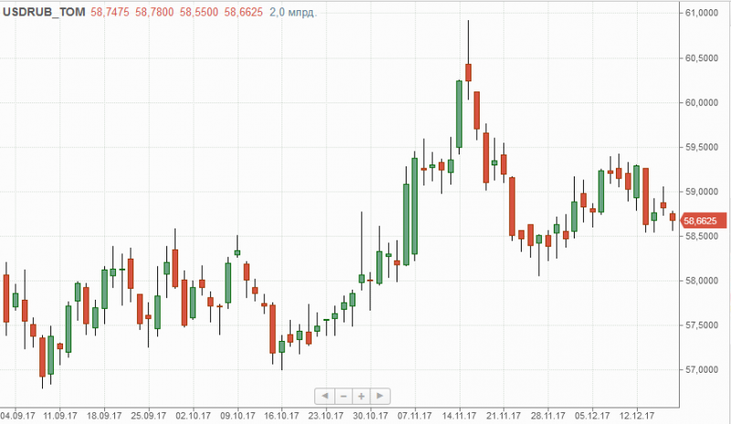 Рубль по итогам прошедшей торговой сессии укрепился на 0,12%, закрывшись на отметке 58,66 за один американский доллар. В настоящий момент ближайшим сопротивлением по-прежнему является отметка 59, основной поддержкой все так же выступает 58,40.