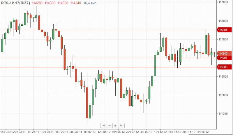 Последние пять торговых сессий фьючерс на индекс РТС торгуется в диапазоне 113500п.-115500п., с промежуточной поддержкой 114000п., выход из которого даст импульс инструменту порядка 1000-1500п по направлению движения.