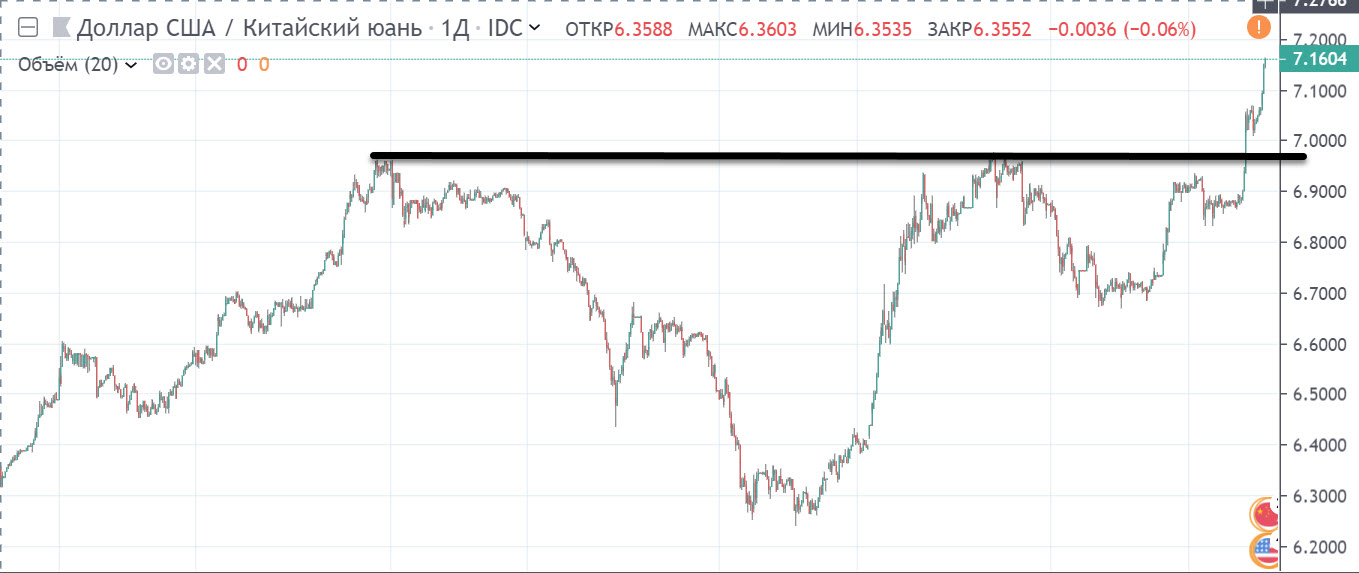 Народный банк Китая (Центробанк) понизил во вторник курс жэньминьби (официальное название китайской валюты) на 240 базисных пунктов, до 7,0810 юаня за доллар. Как следует из статистики регулятора, это минимальное значение с 18 марта 2008 года.