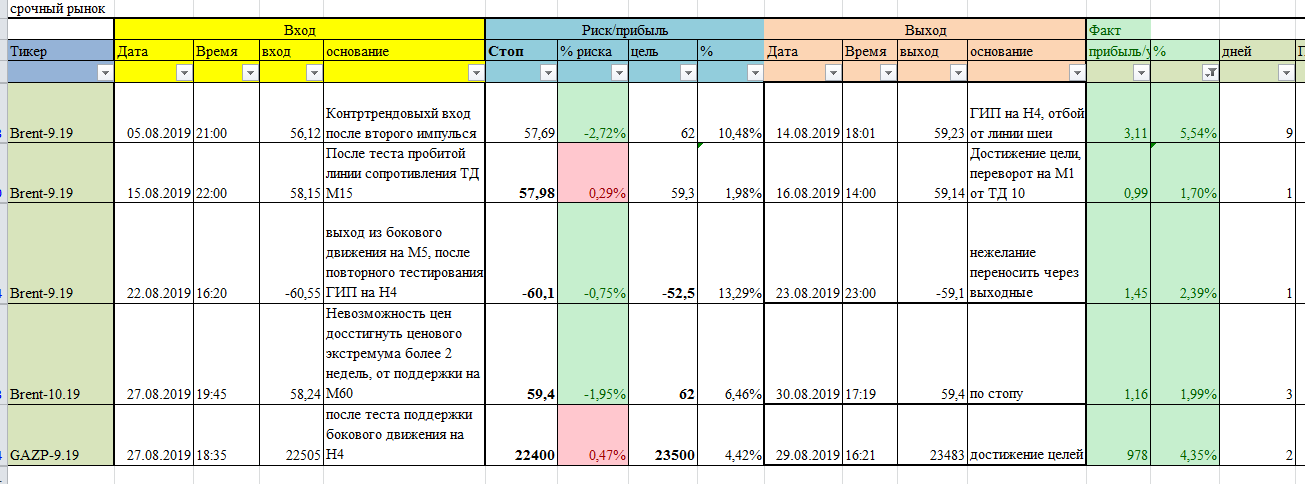 А так в августе, как и ожидалось, что-то заработать в рамках боковых движений не получилось. Приходилось часто заранее фиксировать прибыль от открытых позиций из-за моментами большой волатильности в инструментах.