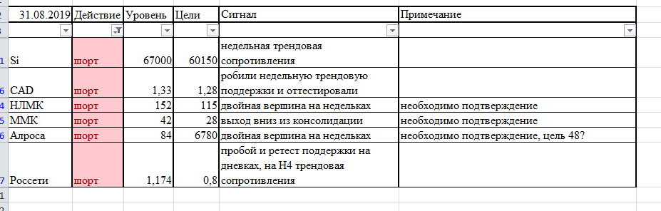 Дневник трейдера - идеи на следующую неделю