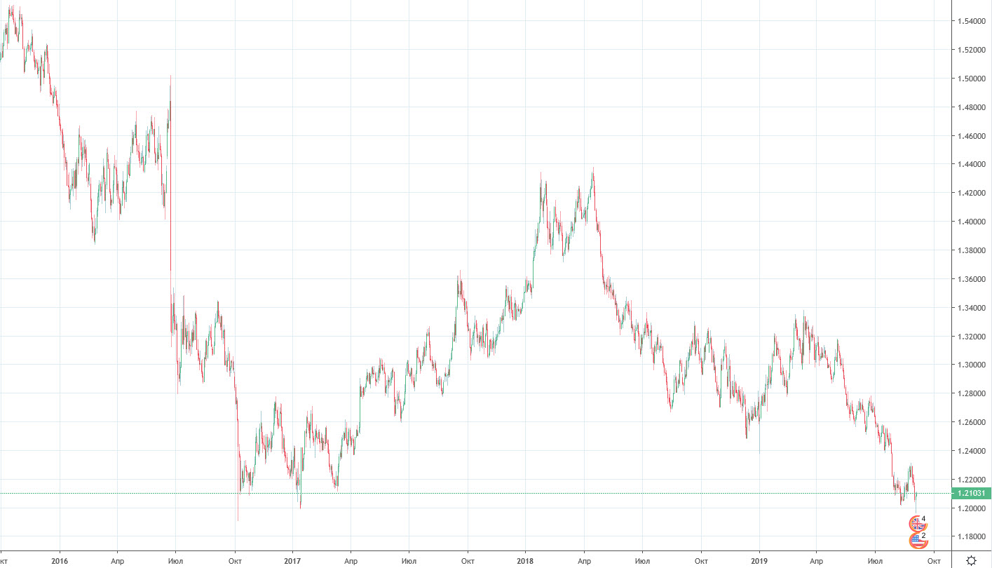"Падение фунта к доллару США имеет 12-летнюю историю. Если сейчас за фунт дают 1,2 доллара, то в далеком 2007-м давали больше 2-х. Нынешние котировки фунта стерлингов минимальны как по отношению к доллару, так и по отношению к евро. Но сами минимумы не новы. Фунт уже стоил так дешево в 2016-17 годах. И тогда британская валюта резко развернулась, набрав около 15% к доллару и около 10% к евро. Сегодня шансы на повторение прошлого сценария малы. Впереди неизбежный Brexit, сценарий которого сейчас мало кто возьмется спрогнозировать. Отток капитала из страны – около 40 млрд. фунтов за год. И это отражение настроения инвесторов. Скорее всего, настроения еще не на своей нижней точке. А нагнетание напряженности вокруг выхода Великобритании из Евросоюза будет их только ухудшать. Прохождение знаковой отметки в 1,2 по паре GBP|USD – плохой знак для «быков» по фунту. Накопленные, но еще не вылившиеся на торгах, тревоги с легкостью отправит фунт еще на 5-10% ниже. И произойти это может в течение сентября-октября. Еще до самого факта Brexit."