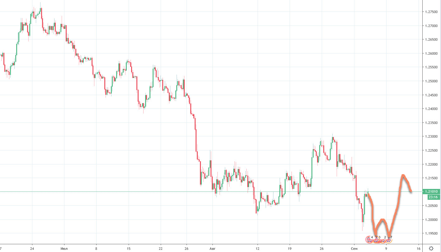 На дневках техника по фунту действительно очень красивая картина по всем ключевым парам.