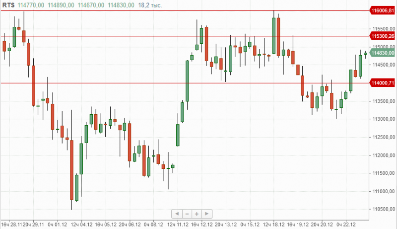 В настоящий момент локальной поддержкой во фьючерсе на индекс РТС выступает отметка 114000п., проход которой снова может вернуть продажи в инструмент. Сопротивления расположены на 115300п. и 116000п.