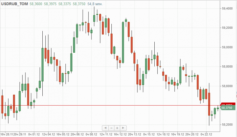 Рубль по итогам прошедшей торговой сессии укрепился на 0,23%, закрывшись на отметке 58,37 за один американский доллар, на фоне налогового периода и продолжающегося роста цен на энергоносители.