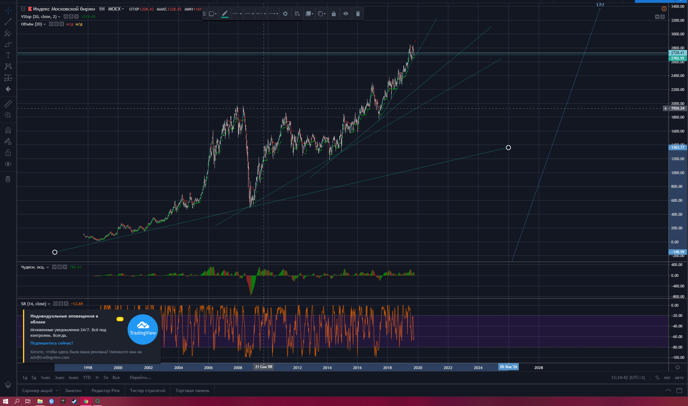 А давайте глянем на лес.Я думаю,что по тихонькку все начинают озознавать всю тягость ситуации и только наши великие стимуляторы пытаются накачать нас мельдонием).А давайте уберем фундаментал и просто глянем на эти линии.В теории ,при прохождении тренда четырех ускорений ,повышается шанс на глубокий откат.Делаем вот так - понимание происходящей ситуации+наши ускорения +мельдоний аптечных пунктов экономики+ на что похоже +давайте вспомним циклы=В каком нибудь ожидании позитивного мероприятия ,вдруг,все поймут ,что это уже не поможет и поздно кормить нас мельдонием .Сердечко то загнано и пора бы уже отлежаться