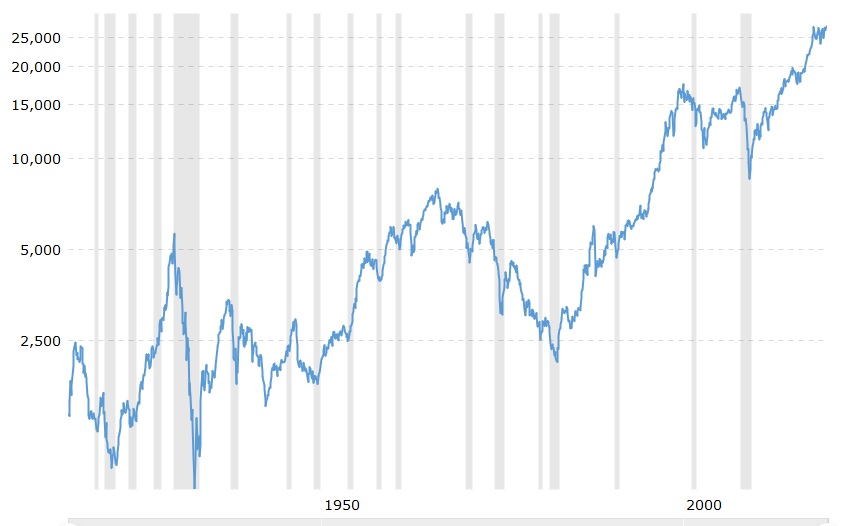 Промышленный индекс Доу-Джонс, несмотря на всю критику и недостатки, остается очень важным индикатором состояния американского фондового рынка. На него ориентируются, с ним сравнивают торговые стратегии (так называемый, бенчмарк), за его изменениями следят и он реагирует на изменения в экономике. Кроме того, для меня он является хорошим предсказателем рецессии (начинает чуть ли не первым предсказывать нездоровье/здоровье рынка).